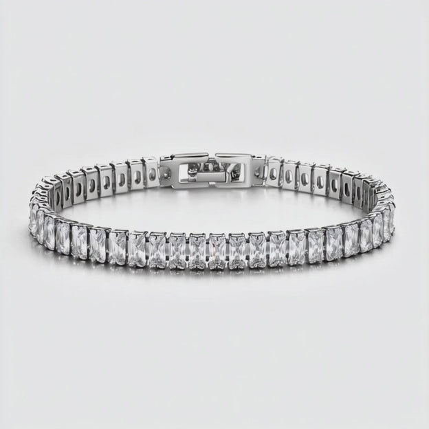 Sylera е сребриста тенис гривна с фин блясък. Водоустойчива, не потъмнява. Доживотна гаранция. Безплатна доставка над 30€ за България.